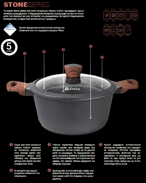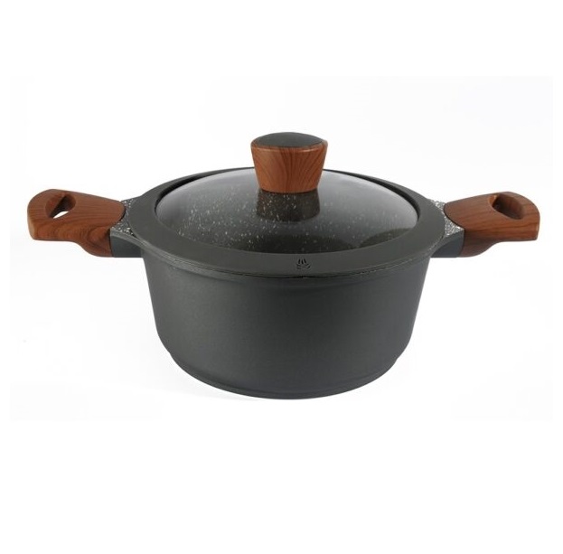 Αντικολλητική κατσαρόλα 24cm από χυτό αλουμίνιο με μαρμάρινη επίστρωση. stone series με τέσσερις οικολογικές επιστρώσεις και πέντε χιλιοστά πάχος