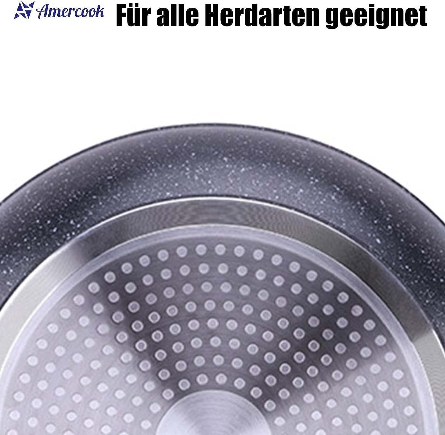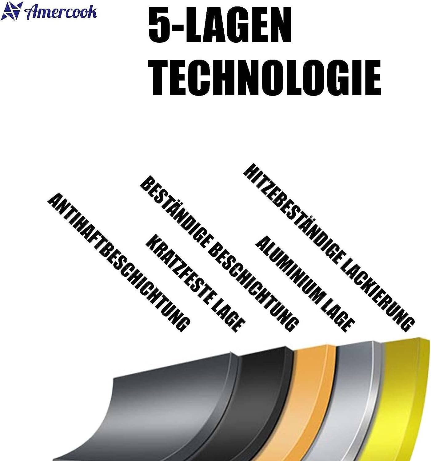 Αντικολλητικό τηγάνι 20 cm Amercook είναι κατασκευασμένη σε όψη σχιστόλιθου υψηλής ποιότητας και κατασκευασμένη από αλουμίνιο με οικολογικό υλικό 5 στρώσεων με βάθος 9 εκατοστά και 4 χιλιοστά πάχος κατασκευασμένη στη ευρωπαϊκή ένωση