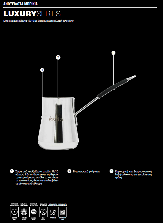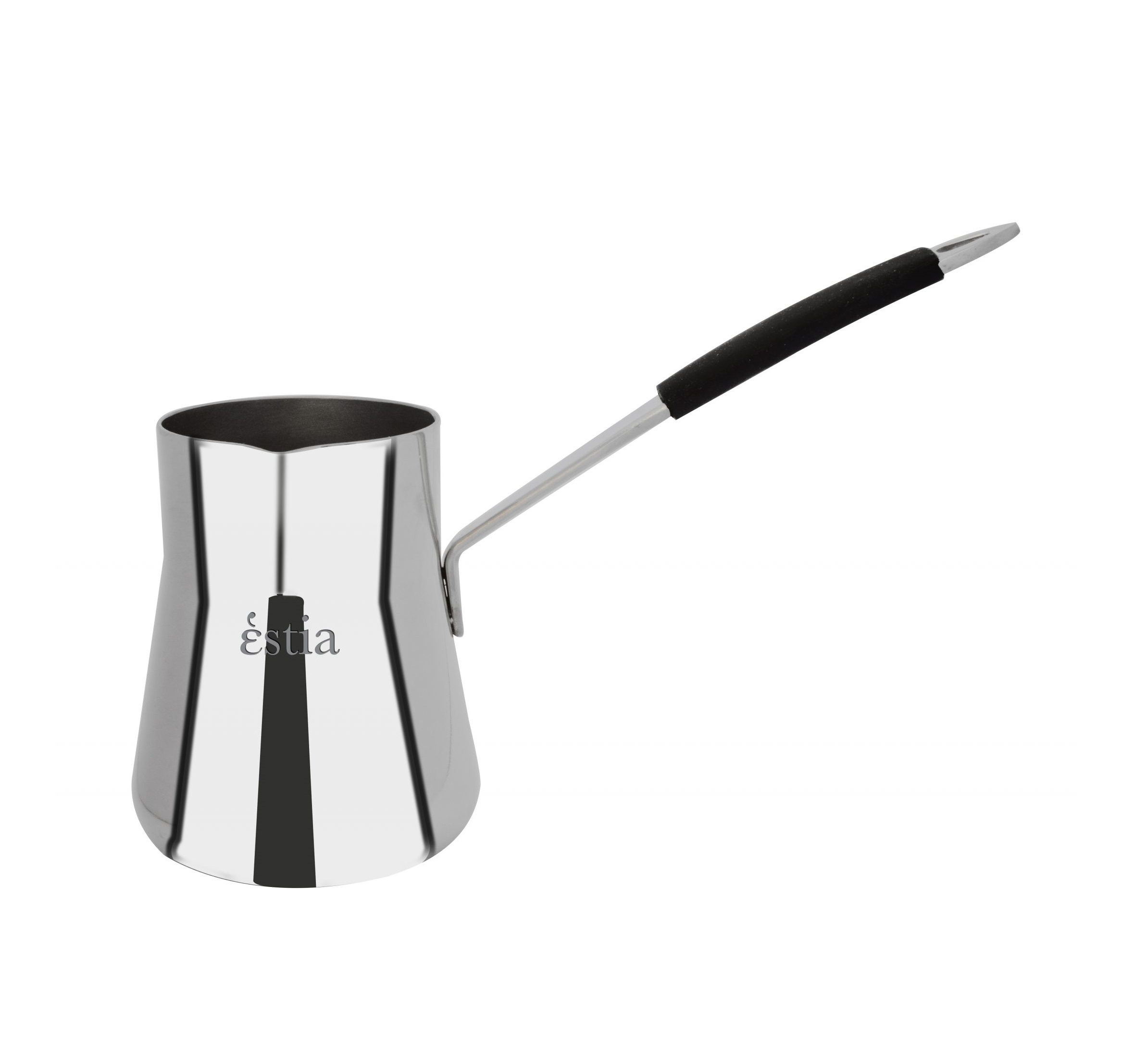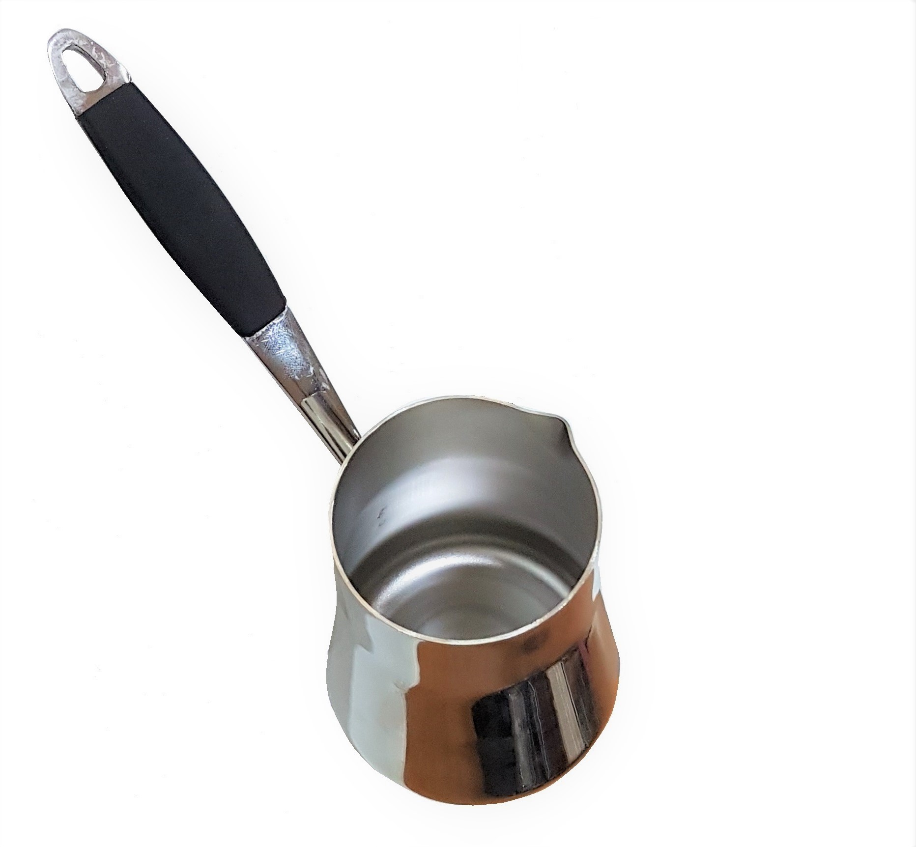 Μπρίκι ανοξείδωτο 200 ml με μεταλλικό μονοκόμματο χέρι με λαβή προστατευτικής μαύρης σιλικόνης με κλειστό στόμιο για καλύτερο καϊμάκι στον καφέ