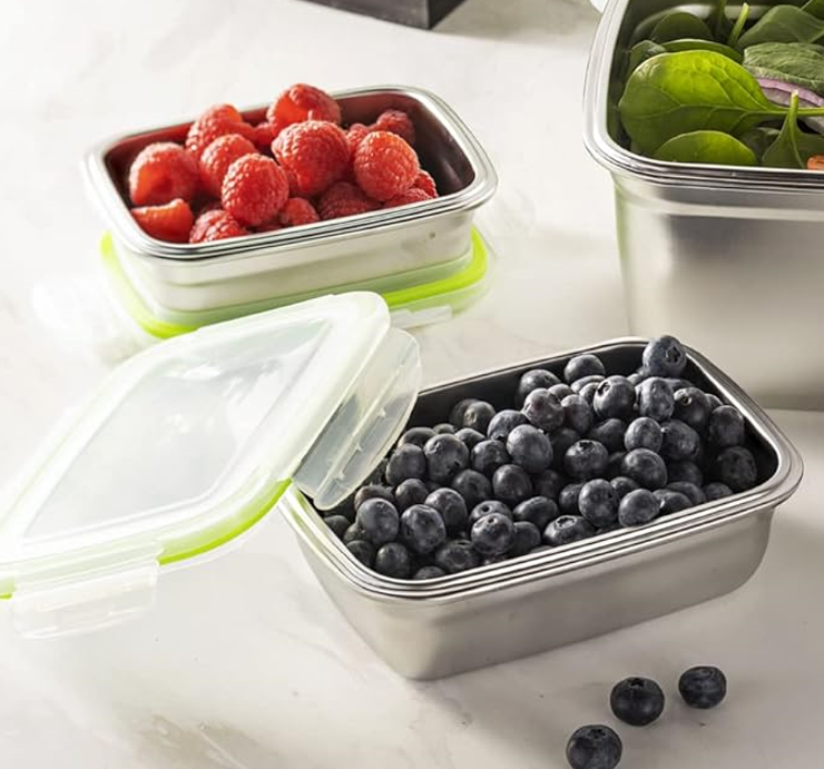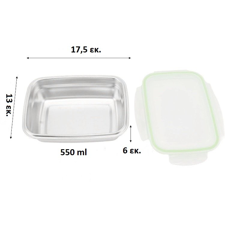 Φαγητοδοχείο ανοξείδωτο 550 ml 18/10 ορθογώνιο με πλαστικό καπάκι με λάστιχο σιλικόνης για αεροστεγές κλείσιμο με διάσταση 17,5 χ 13 χ 6 και χωρητικότητα 550 ml