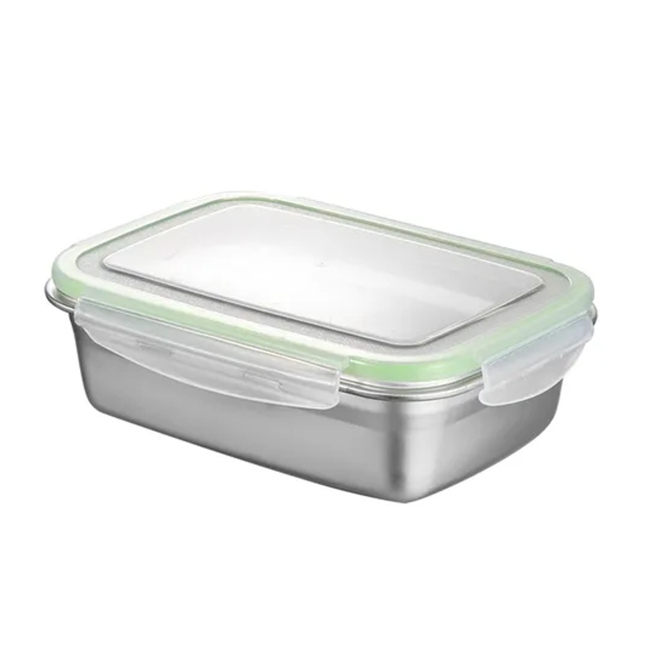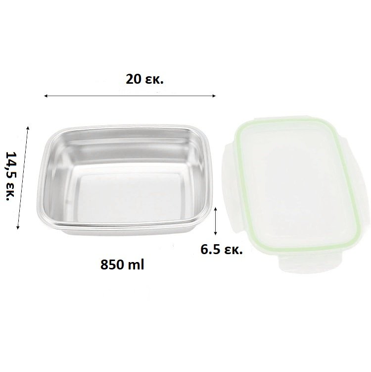 Φαγητοδοχείο ανοξείδωτο 850 ml 18/10 ορθογώνιο με πλαστικό καπάκι με λάστιχο σιλικόνης για αεροστεγές κλείσιμο με διάσταση 20 χ 14,5 χ 6,5 και χωρητικότητα 850 ml