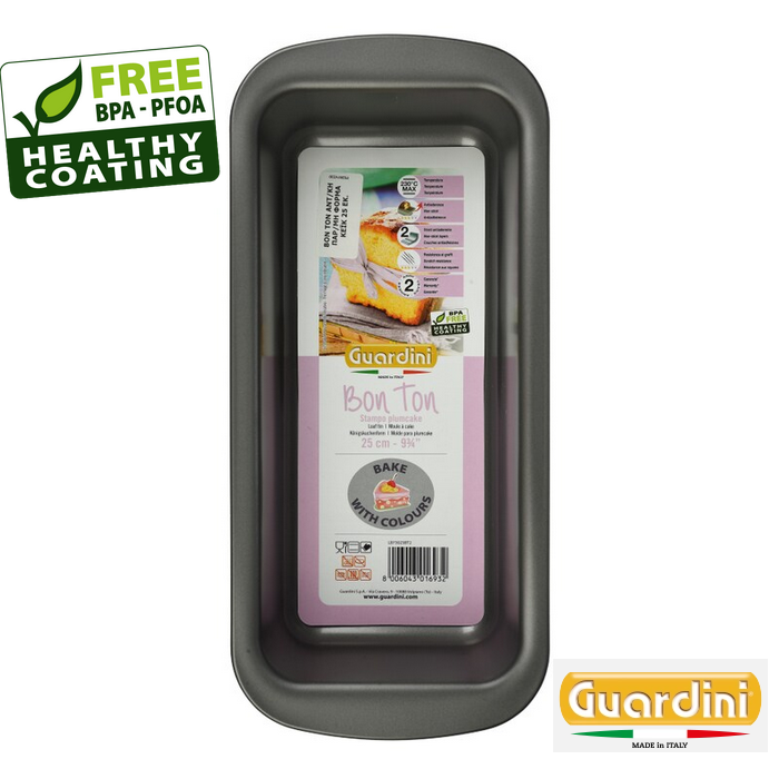 Φόρμα κέικ αντικολλητική 30 εκ. Guardini Italy 30χ11χ6 εσωτερικά και εξωτερικά 35χ13,5 με οικολογική τριπλή αντικολλητική επίστρωση Η ποιότητα Made in Italy των σκευών Guardini εγγυάται εξαιρετικά αποτελέσματα σε δέρμα, αντικολλητικά και αναιρούμενα χάρη στην ποιότητα των αντικολλητικών επεξεργασιών με τις οποίες κατασκευάζονται, καθώς και την ευκολία καθαρισμού μετά τη χρήση. Εξαιρετικά πρακτική, εύκολη στο καθάρισμα, αντικολλητική χάρη στο διπλό φινίρισμα. Το σχήμα της είναι ειδικά σχεδιασμένο για να σας προσφέρει εξαιρετικά αποτελέσματα και εξαιρετική λειτουργικότητα. Συνιστάται η χρήση σε μέγιστη θερμοκρασία 230 °C.