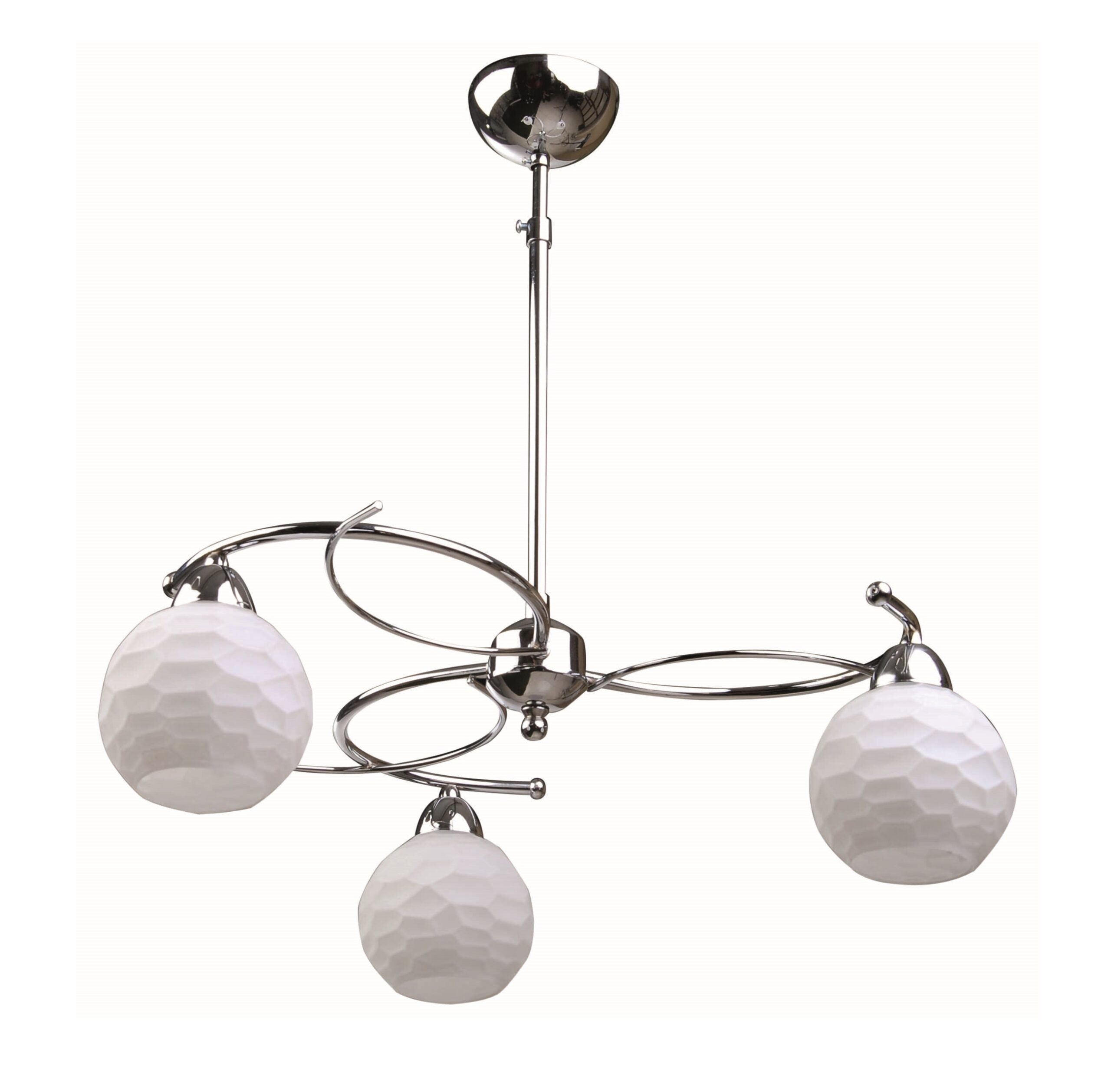 Φωτιστικό ασημί 3 φώτα με σκελετό από χρώμιο ανθεκτικό στην φθορά του χρόνου με πτυσσόμενη βέργα για την ρύθμιση του ύψους ΜΑΧ.μέχρι 70 εκατοστά και πλάτος 65 εκατοστά με λευκό γυαλί κυψελοειδή 3 Χ Ε27 ΜΑΧ.60W