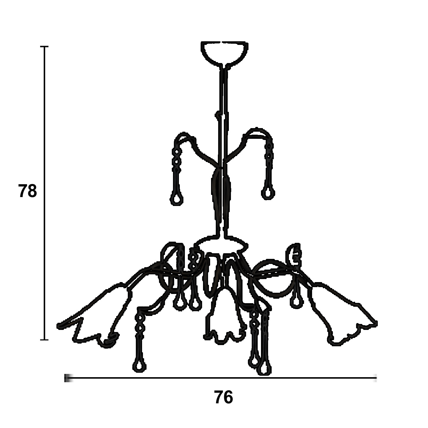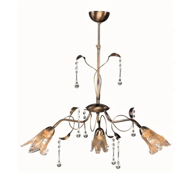 Φωτιστικό μπρονζέ 3 φώτα με οξιντέ ηλεκτροστατική βαφή μεγάλης αντοχής με μελί φυσητά γυαλιά και κρυσταλλάκια κρεμαστά στα φύλα του κάθε μπράτσου με μέγιστο ύψος 78 εκ. και πλάτος 76 εκ. 3 Χ Ε17 ΜΑΧ 60 W