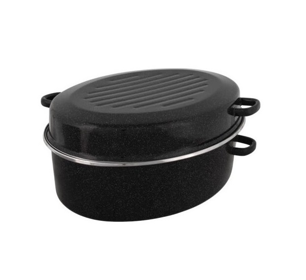 Γάστρα εμαγιέ με καπάκι οβάλ και ανοξείδωτο χείλος 34Χ24Χ16