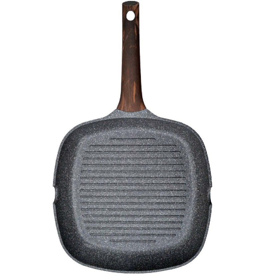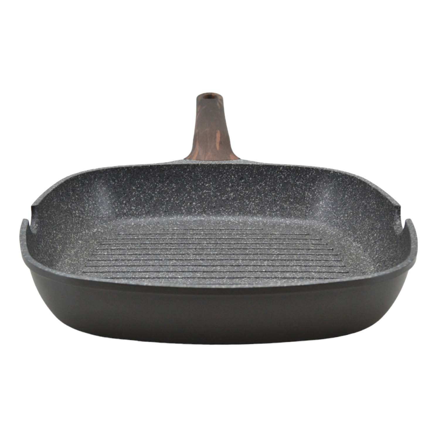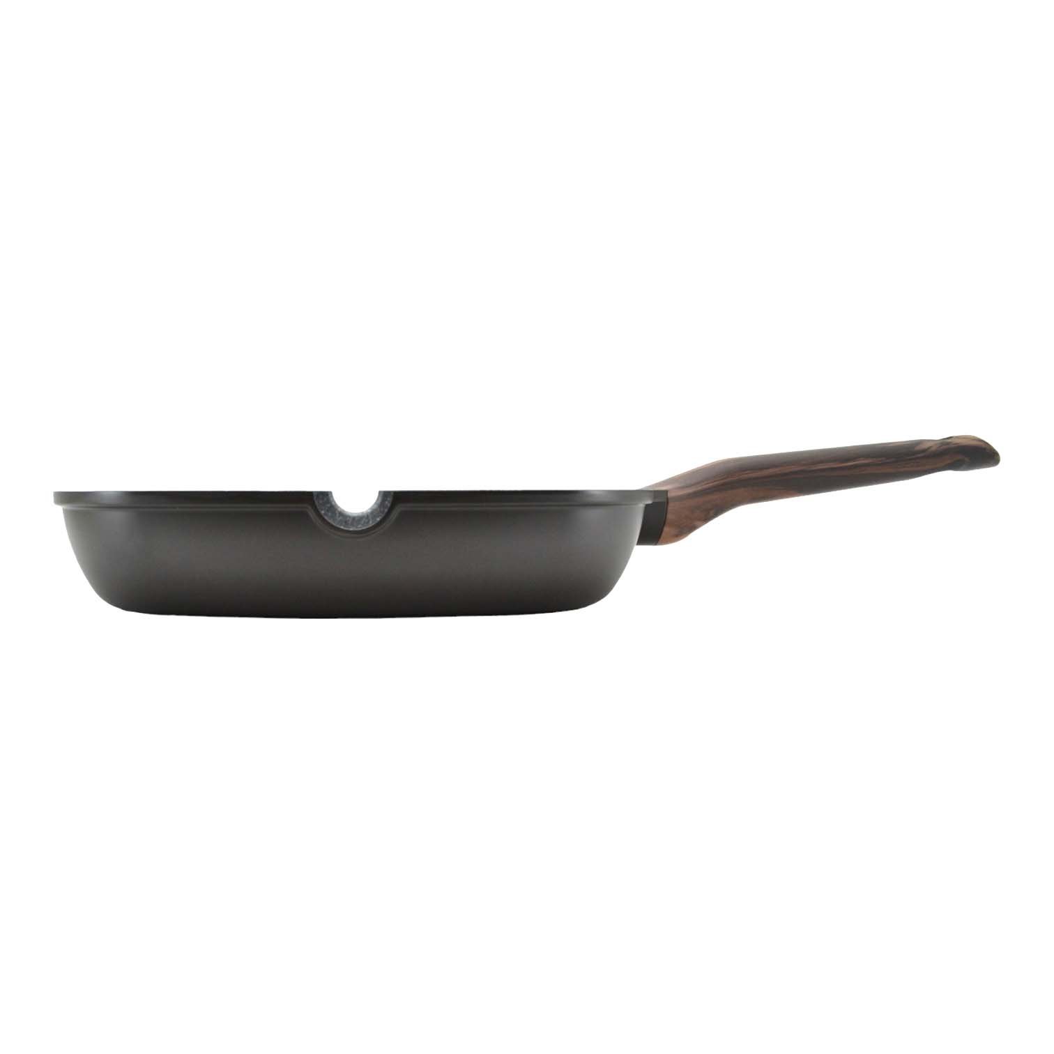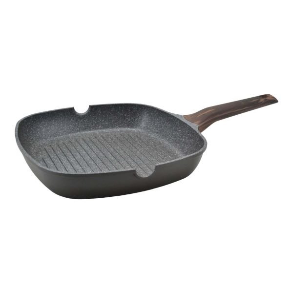Γκριλιέρα αντικολλητική επίστρωση σε μαύρο ματ χρώμα εξωτερικά και πενταπλή αντικολλητική και οικολογική επίστρωση εσωτερικά από χυτό αλουμίνιο 4 χιλιοστών από την ιταλική zanetti με διάσταση 28χ28