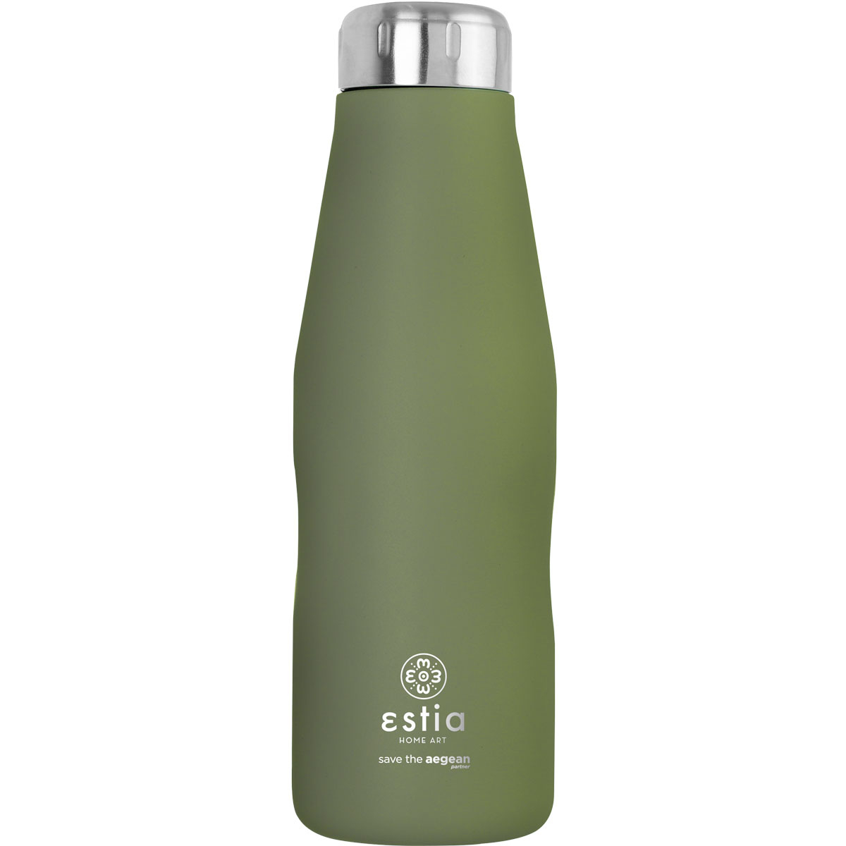 Ισοθερμικό μπουκάλι 500 ml estia πράσινο χρώμα από ανοξείδωτο ατσάλι με διπλά τοιχωματα για κρύα ροφήματα ως 24 ώρες και για ζεστά ως 12 ώρες έχει 100% στεγανότητα χάρη στο ανοξείδωτοί καπάκι του με σώμα από σιλικόνη εσωτερικά. Διαιτηθείτε σε χάρτινη κυλινδρική συσκευασία με καπάκι