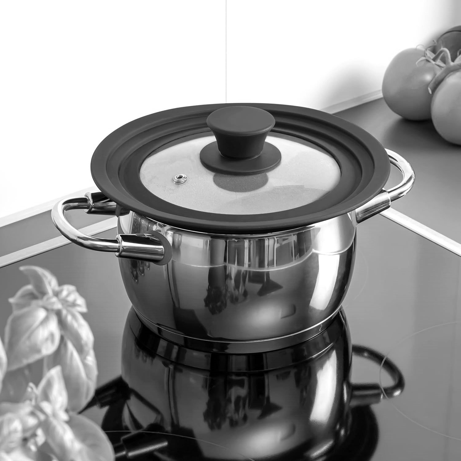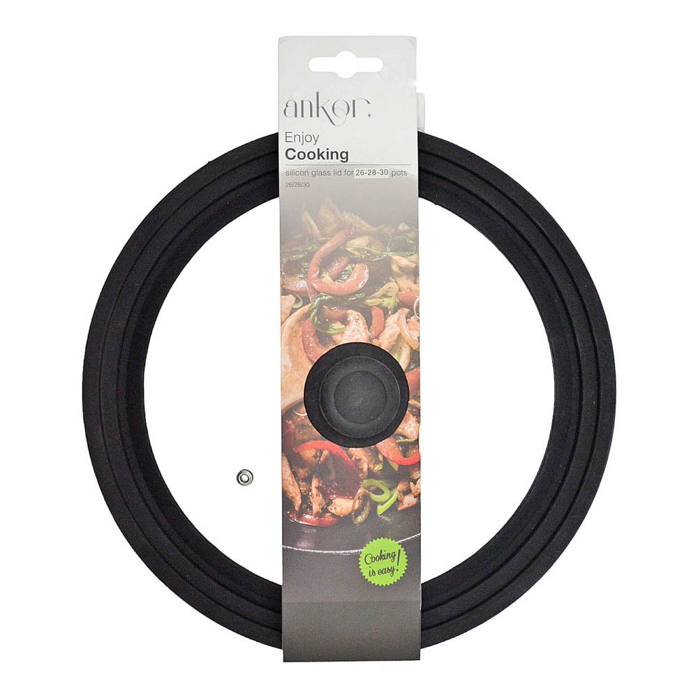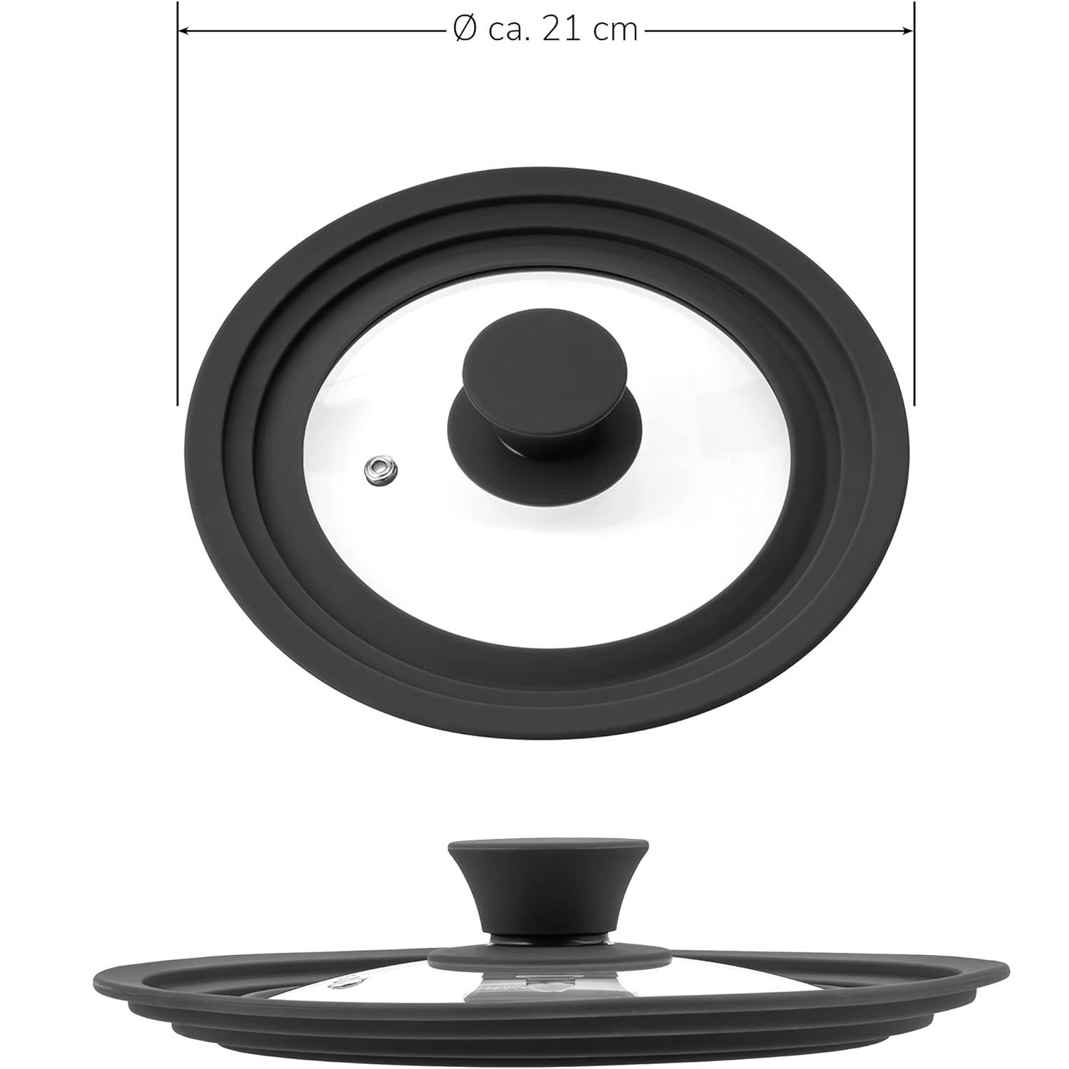 Καπάκι κατσαρόλας 26-28-30 πολλαπλής χρήσης με πυρίμαχο γυάλινο σώμα κατάλληλο για 3 μεγέθη μαγειρικών σκευών τηγάνια κατσαρόλες με τελείωμα από άκαυτη σιλικόνη για εύκολη εφαρμογή και βαλβίδα εκτόνωσης για τους υδρατμούς