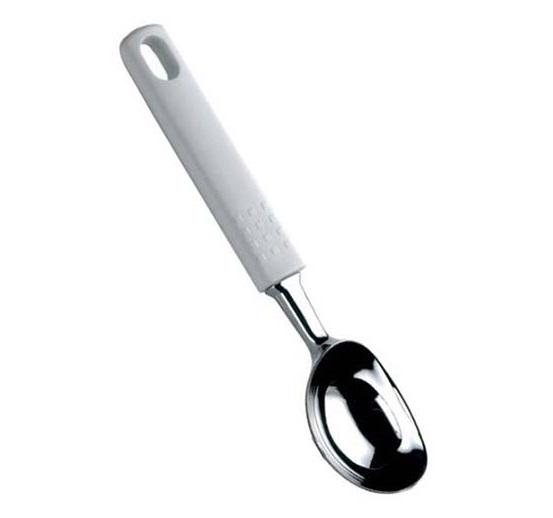 Κουτάλα παγωτού GHIDINI ανοξείδωτη με πλαστική λευκή λαβή από την κορυφαία ιταλική εταιρία με διάσταση μπάλας 4,5 χ 6,5 και συνολικό μήκος 21 εκατοστά