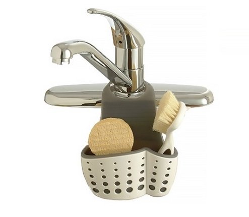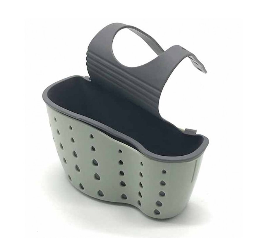 Κρεμαστή βάση νεροχύτη με ελαστικό κουμπωτό ιμάντα για το κρέμασμα στην βρύση από καουτσούκ για το απορρυπαντικό, το σφουγγάρι και τα βουρτσάκια του νεροχύτη