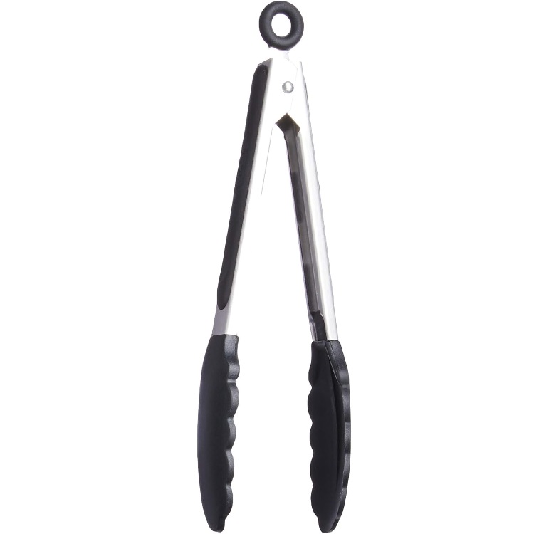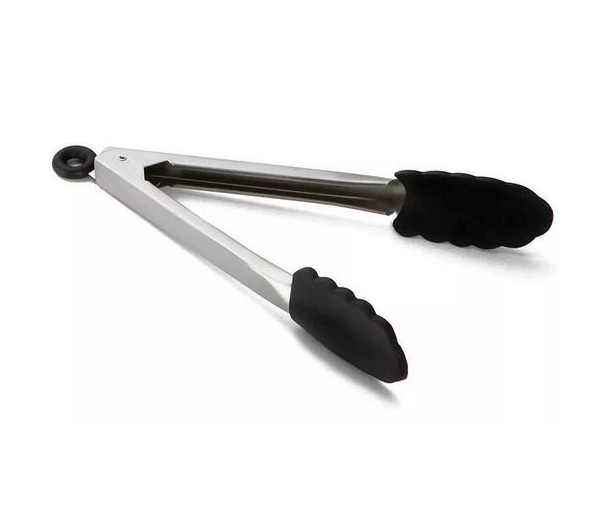 Λαβίδα σιλικόνης μικρή ανοξείδωτη με άκρα σιλικόνης 28 εκατοστά κατάλληλη για επαγγελματική χρήση και αντικολλητικά σκεύη από οικολογική σιλικόνη