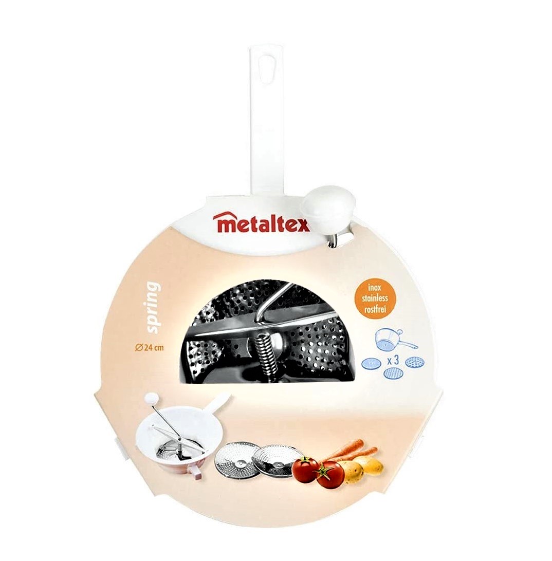 Μύλος λαχανικών πλαστικός 24 εκατοστά με 3 ανοξείδωτους τρίφτες για άλεσμα τροφών και κοπή λαχανικών από την ιταλική κατασκευαστική εταιρία metaltex με παράδοση στα ποιοτικά προϊόντα