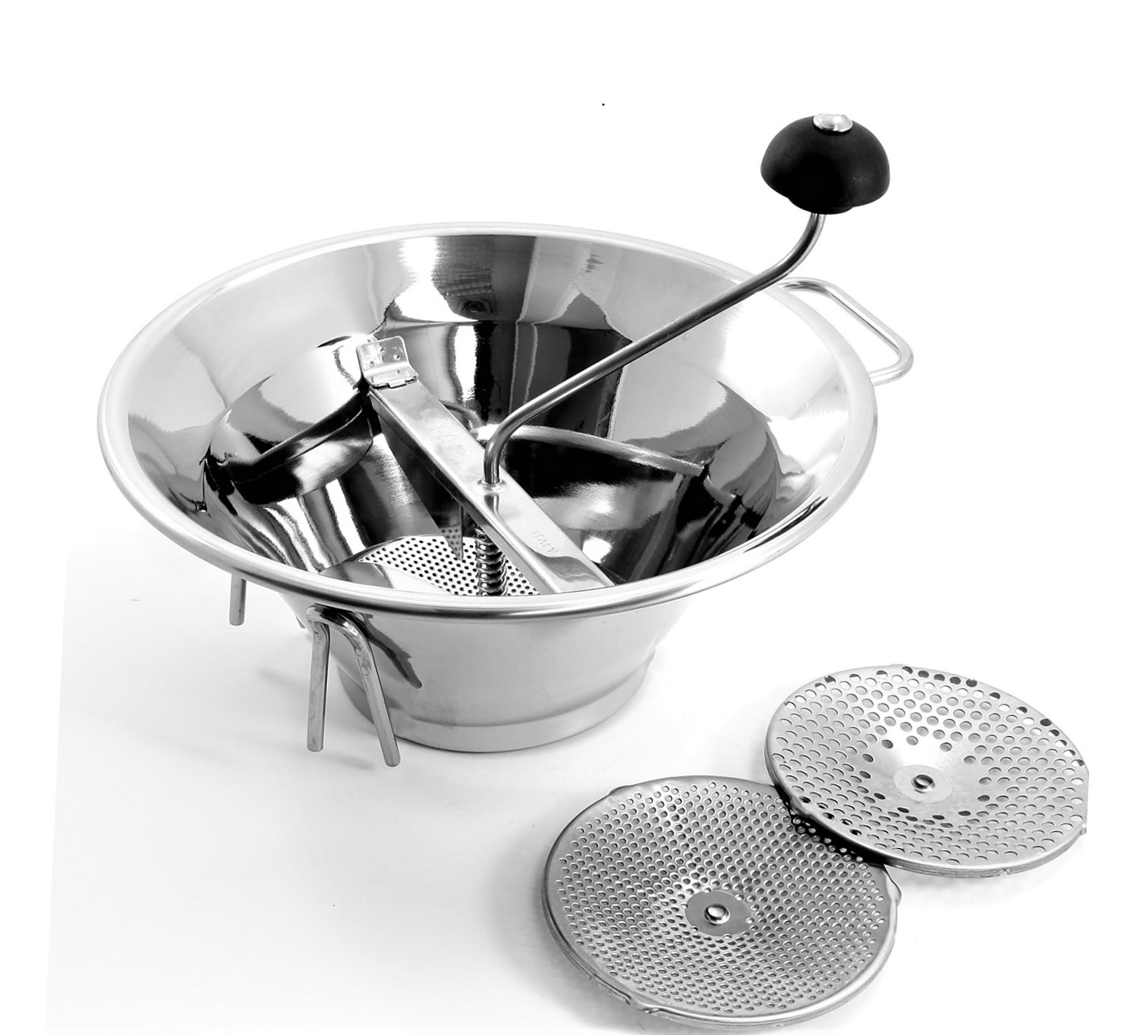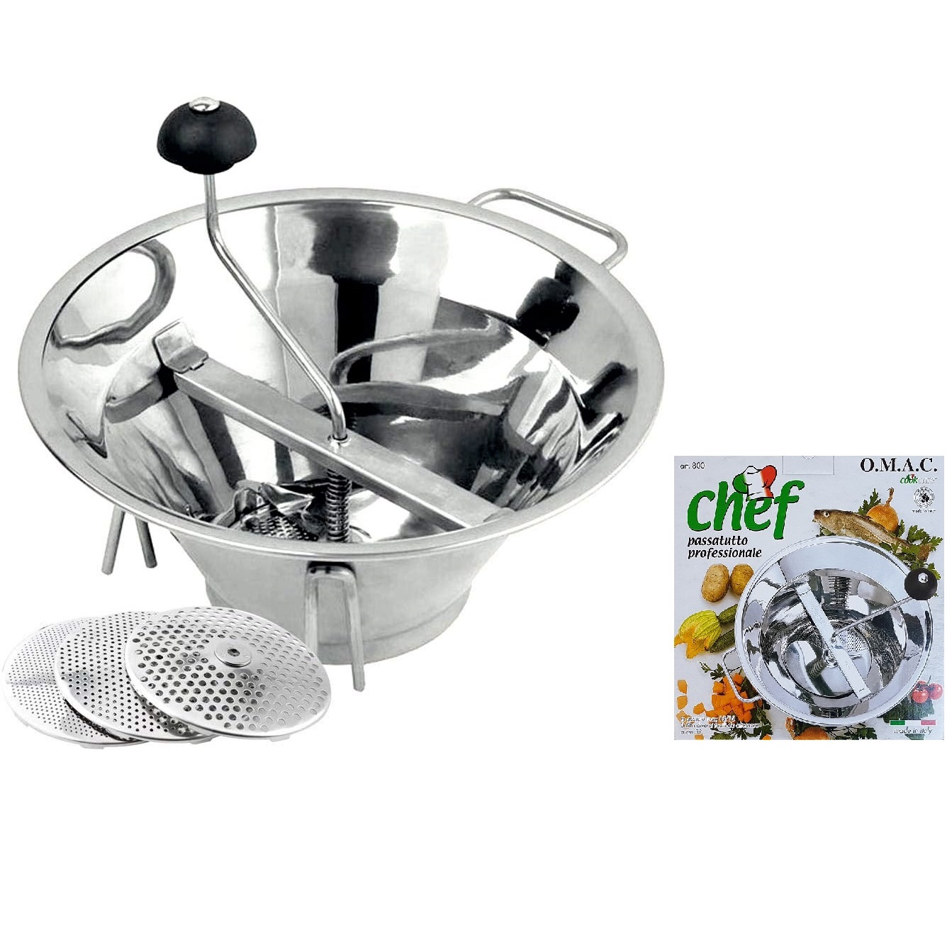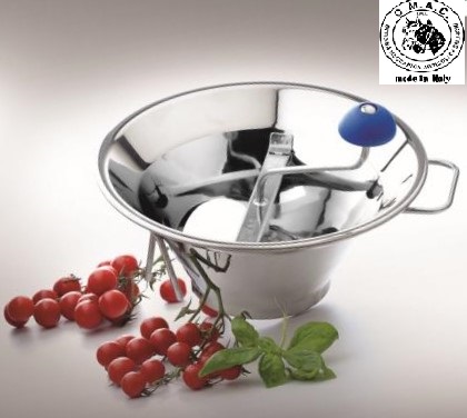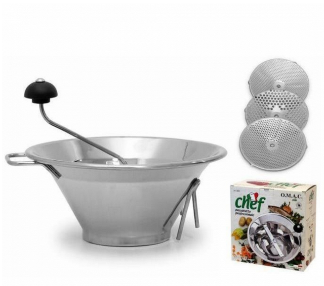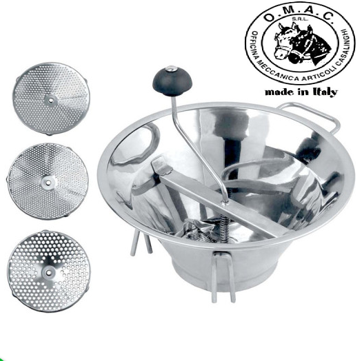 Μύλος μεγάλος λαχανικών 33 cm μηχανή αλέσματος ανοξείδωτη 18/10 με  3 δίσκους Ιταλίας κατάλληλος για επαγγελματική χρήση για άλεσμα λαχανικών ,πουρέ άλεσμα ντομάτας πάστας και διάφορων φρούτων από την o.m.a.c.