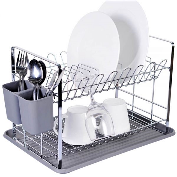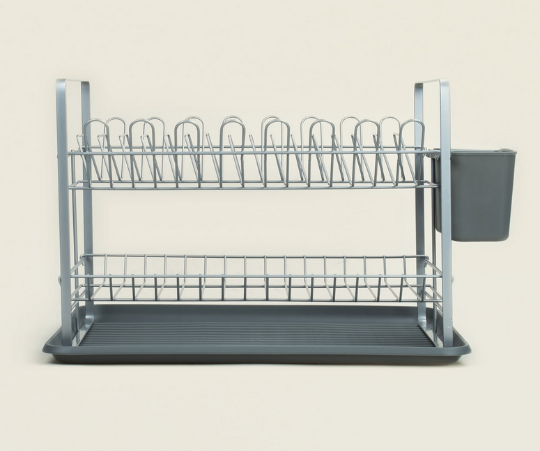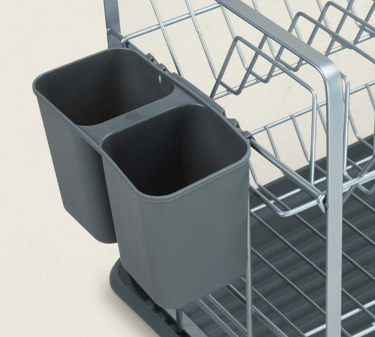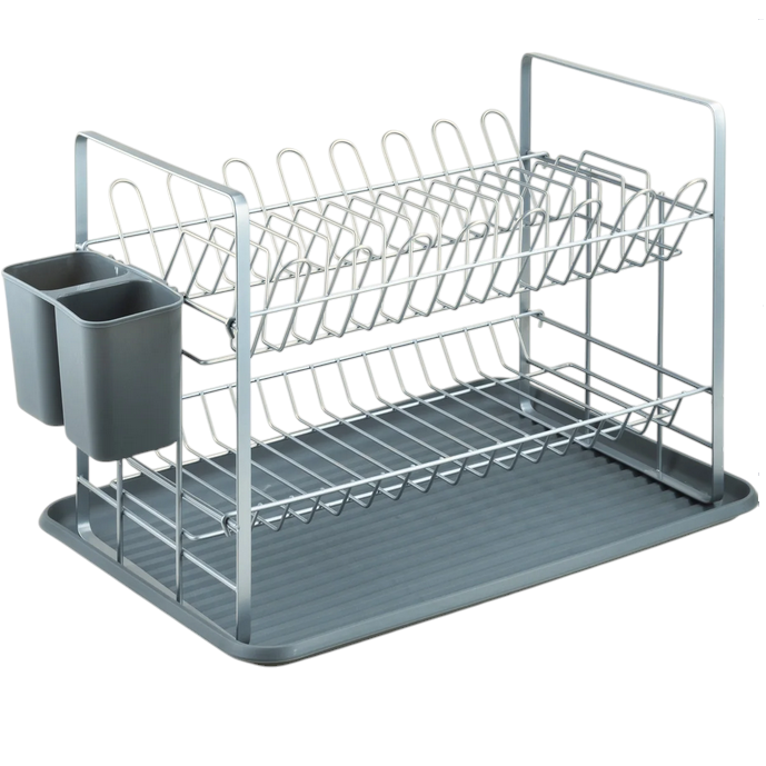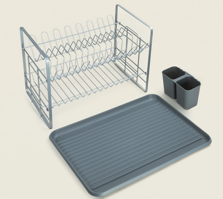 Πιατοθήκη ασημί ματ κατάλληλο στην επαφή με τρόφιμα με γκρι δίσκο και κοντυλοθήκη 2 θέσεων ανεξίτηλη στον χρόνο και την σκουριά με διάσταση 48χ32χ29