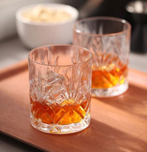 Ποτήρι κρασιού ανάγλυφο γυάλινο από πεντακάθαρο γυαλί με χωρητικότητα 230 cl κατάλληλο για χαμηλό ποτού με ύψος 8,5 και πλάτος 7,5 εκατοστά [ συσκευασία 6 τεμαχίων]