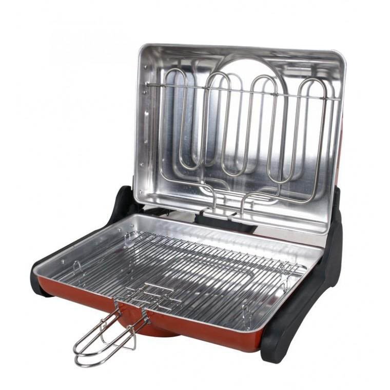 Ψηστιέρα ηλεκτρική με διπλή ανοξείδωτη σχάρα με συρταρωτές λαβές για εύκολη αποθήκευση με πυκνή αντίσταση 1200 WW για οικονομικό και γρήγορο ψήσιμο σε κόκκινο χρώμα και σώμα αλουμινίου που χωρίζει σε 2 μέρη για εύκολο πλύσιμο αφαιρούμενο μηχανισμό της αντίστασης μαζί με το καλώδιο και τον διακόπτη για καθαρισμό του πάνω μέρους με ένα τράβηγμα και διακόπτη ον of . ΠΡΟΣΟΧΗ βάζουμε ένα ποτήρι νερό στο κάτω μέρος για καλύτερο ψήσιμο και για να μην δημιουργούνται οσμές από το κάψιμο του λίπους. Το προϊόν καλύπτετε με εγγύηση 2 χρόνων