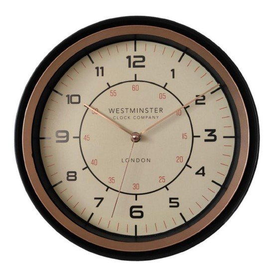 Ρολόι τοίχου πλαστικό στρογγυλό μαύρο μπεζ 30 εκατοστά