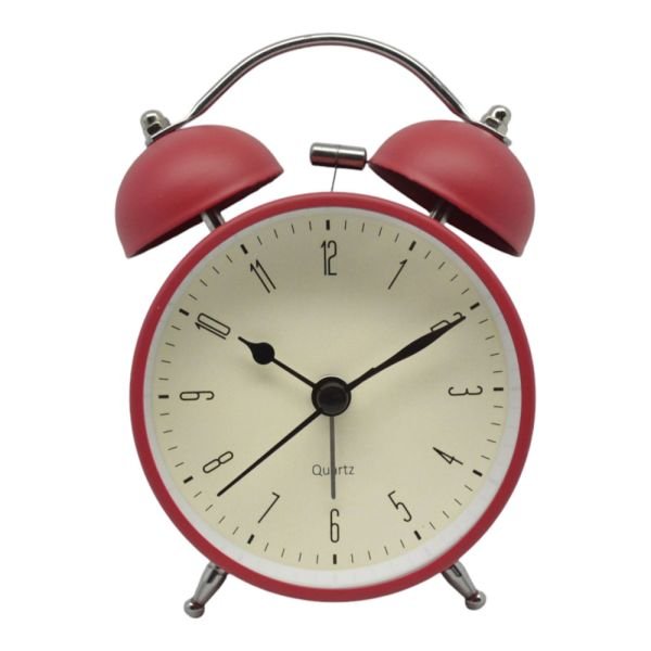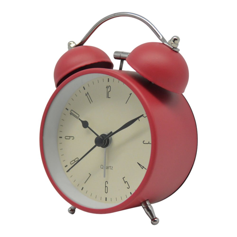 Ρολόι ξυπνητήρι μεταλλικό κόκκινο χρώμα και με αθόρυβη ηλεκτρονική λειτουργία, δυνατό ήχο όμως, με διάμετρο 8 εκατοστά χωρίς τα πόδια και το κουδούνι για το πρωινό ξύπνημα
