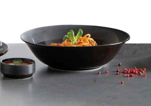 Σαλατιέρα μαύρη «Midnight»με γυαλιστερές ελικοειδής λεπτομέρειες από πορσελάνη άριστης ποιότητας πεντακάθαρο μεγάλης αντοχής καθαρά για επαγγελματική χρήση διαθέσιμο σε 23 εκατοστά.