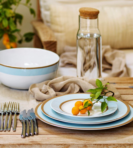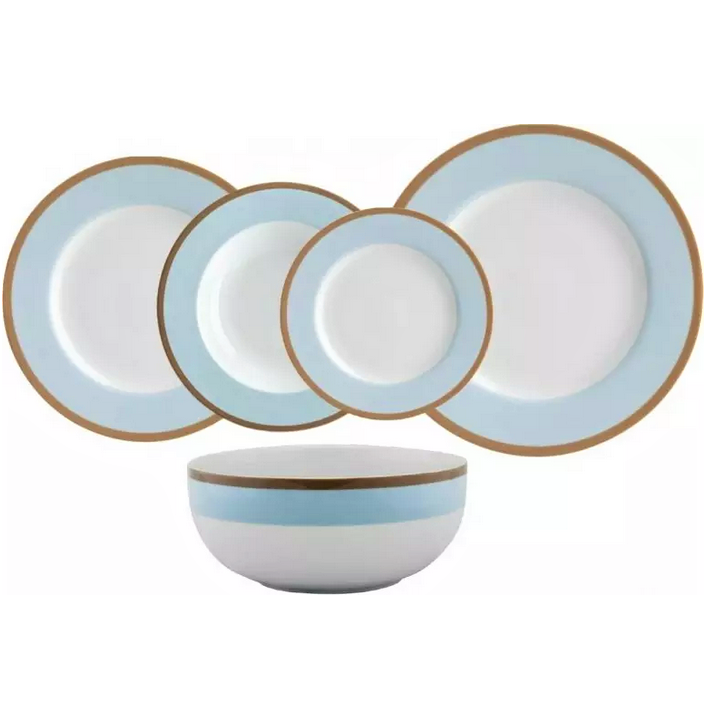 Σαλατιέρα πορσελάνη Ιωνία Basics SKY στρογγυλό 23 εκατοστά από φίνα πορσελάνη αρίστης ποιότητας μπορντούρα σε γαλάζιο και καφέ χρώμα κάτω από το υάλωμα κατάλληλο για φούρνο μικροκυμάτων και πλυντήριο πιάτων