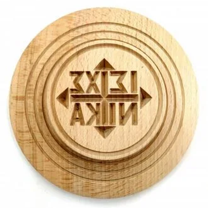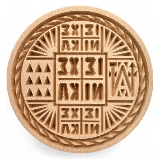Σφραγίδα για πρόσφορο χειροποίητη αγίου όρους με βαθιά γράμματα από ξύλο οξιάς με διάσταση κάτω μέρους 13,5 εκατοστά και το πάνω μέρος 7,5 εκατοστά