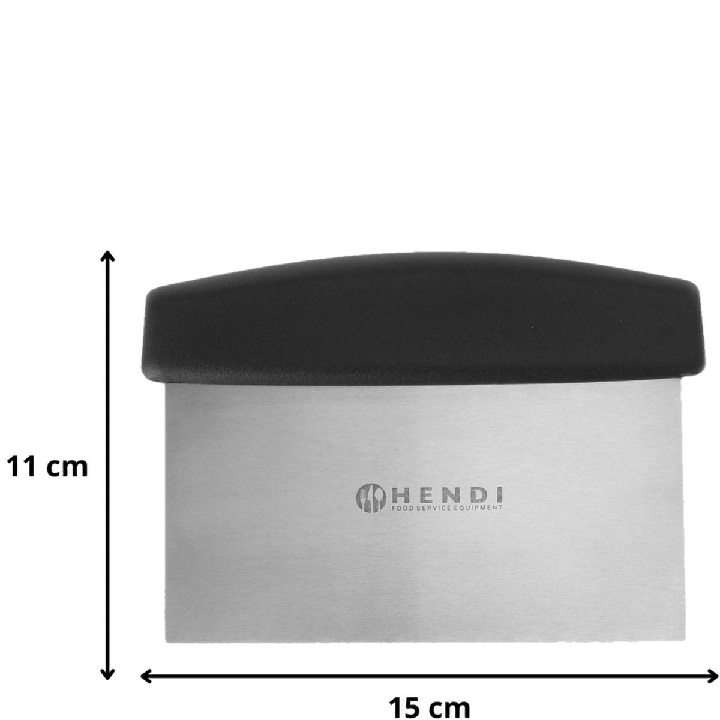 Σπάτουλα αρτοποιίας για την κοπή ζύμης ένα απαραίτητο εργαλείο και για την ζαχαροπλαστική με διάσταση 15 εκατοστά το κάτω μέρος και με ύψος 11 μαζί με το πλαστικό χέρι