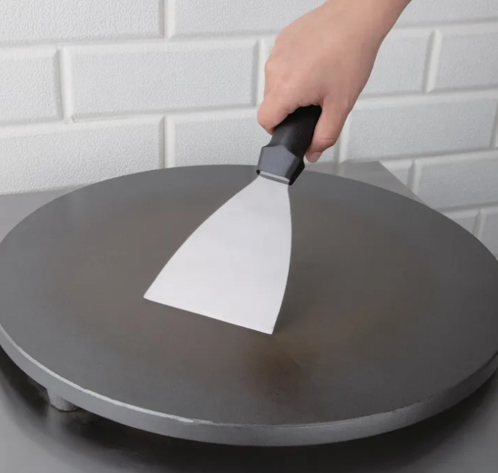 Σπάτουλα πλατό κοφτερή ανοξείδωτη με πλαστική άκαυτη λαβή με μήκος 25 εκατοστά και πλάτος λάμας 12 από την μια πλευρά και 12 από την άλλη απαραίτητο εργαλείο για τον ψήστη