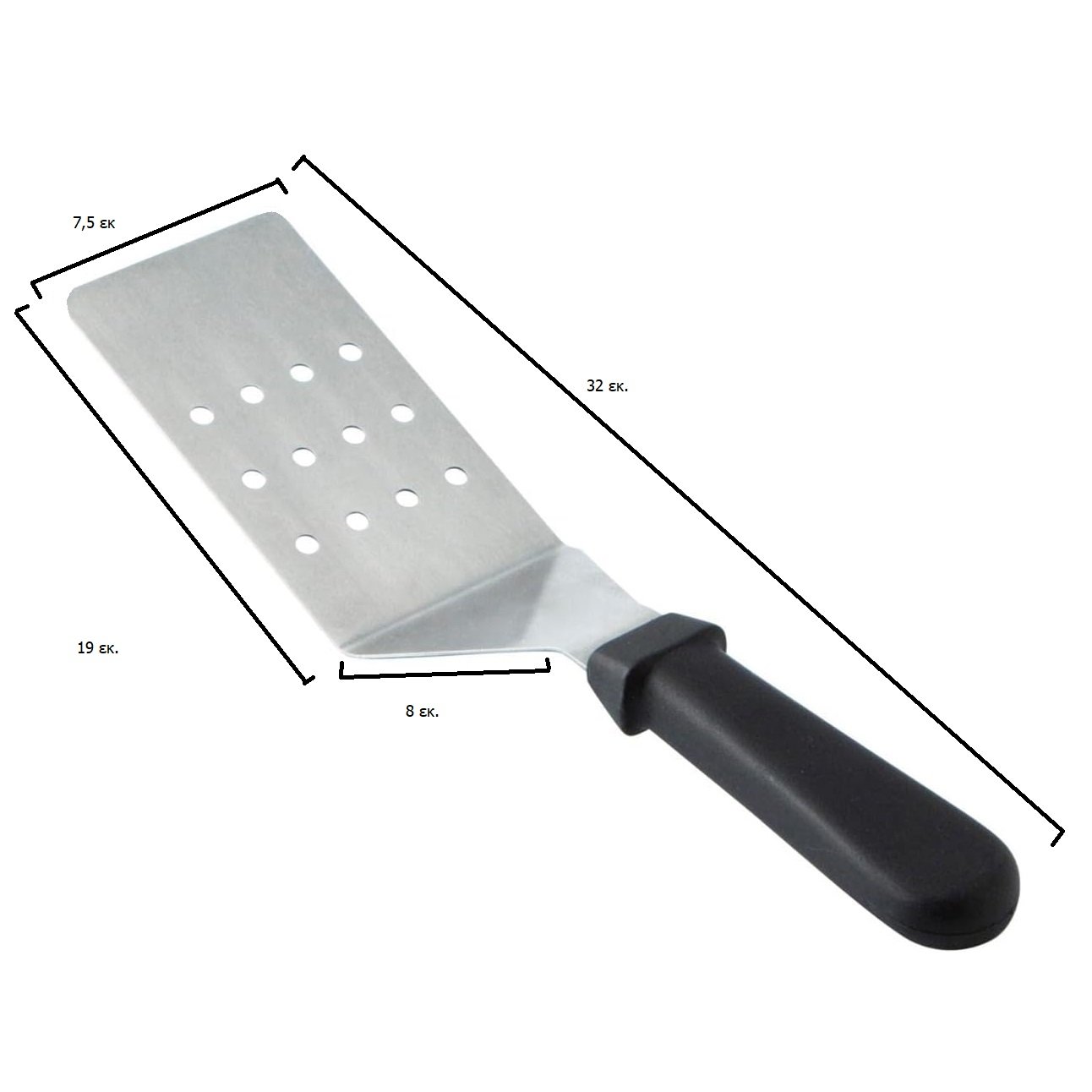 Σπάτουλα σπαστή τρυπητή μικρή με πλαστική λαβή και συνολικό μήκος 32 εκατοστά πλάτος 7,5 19 εκατοστά μήκος ωφέλιμης λάμας