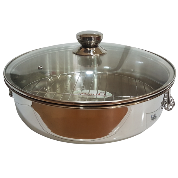 Στρογγυλή Γάστρα inox 32 εκ. πολυσκέυος με σχάρα και χέρια 32 x 9.5 cm Viomar