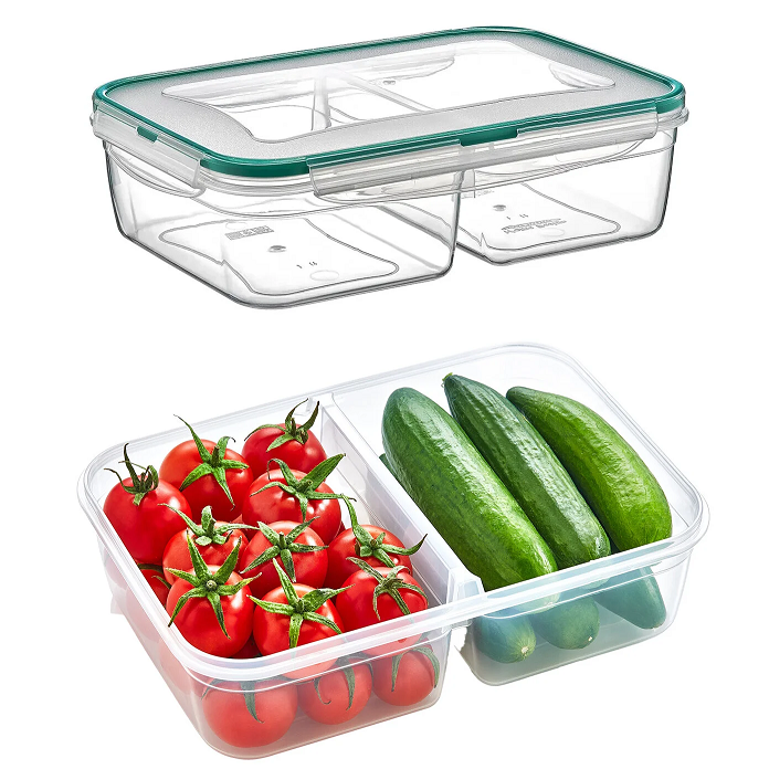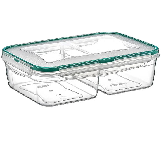 Τάπερ 2 θέσεων με χωρητικότητα 2 λίτρων με λάστιχο σιλικόνης στο καπάκι και ασφαλή κλείσιμο με πλαστικά κλιπ κατάλληλο για αλλαντικά ξηρούς καρπούς